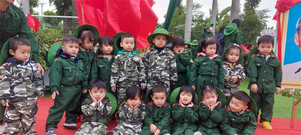 Trong chuỗi hội thi này các bé được tìm hiểu về khẩu lệnh cơ bản trong quân ngũ, trang phục, công việc của chú bộ đội. Không chỉ có vậy tác phong gọn gàng nhanh nhẹn của các chú được các cháu học và ứng dụng tại lớp đã tạo cho các con sân chơi được trải nghiệm, đóng vai làm các chú bộ đội. tham gia hành quân , được chơi những trò chơi mo phỏng lại trên thao trường của các chú bộ đội