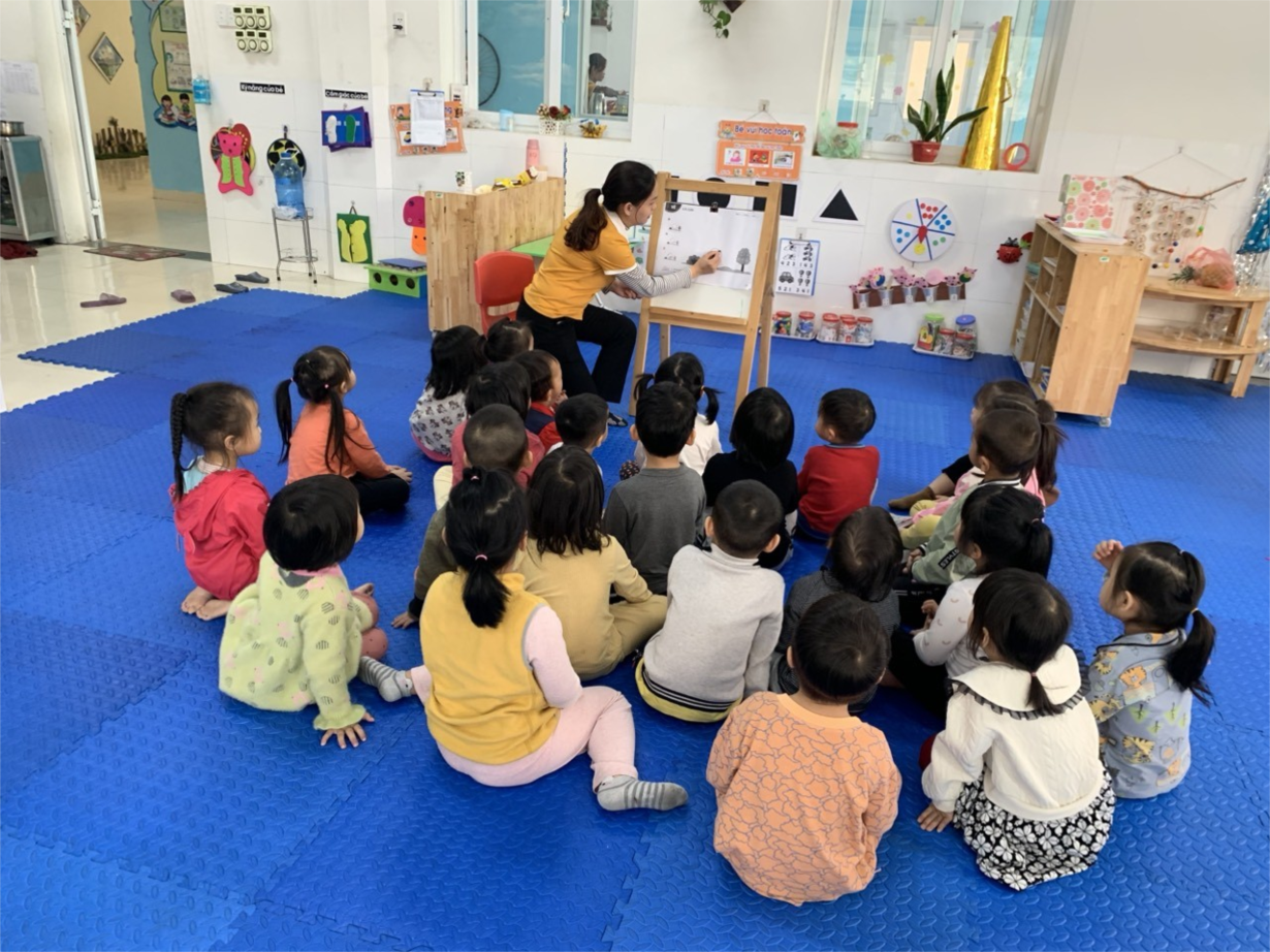 Cô giáo Nguyễn Thị Thu Trang và cô giáo Vũ Thị Oanh đã tổ chức cho các con hoạt động tạo hình "Vẽ con gà". Trước khi vào hoạt động giáo viên cho trẻ quan sát và nhận xét được điểm của con gà, chất liệu tạo ra con gà qua tranh vẽ của cô, cộng với sự hưỡng dẫn kỹ càng, tỷ mỉ mà sau một thời gian trẻ đã vẽ được những chú gà mà trẻ yêu thích.