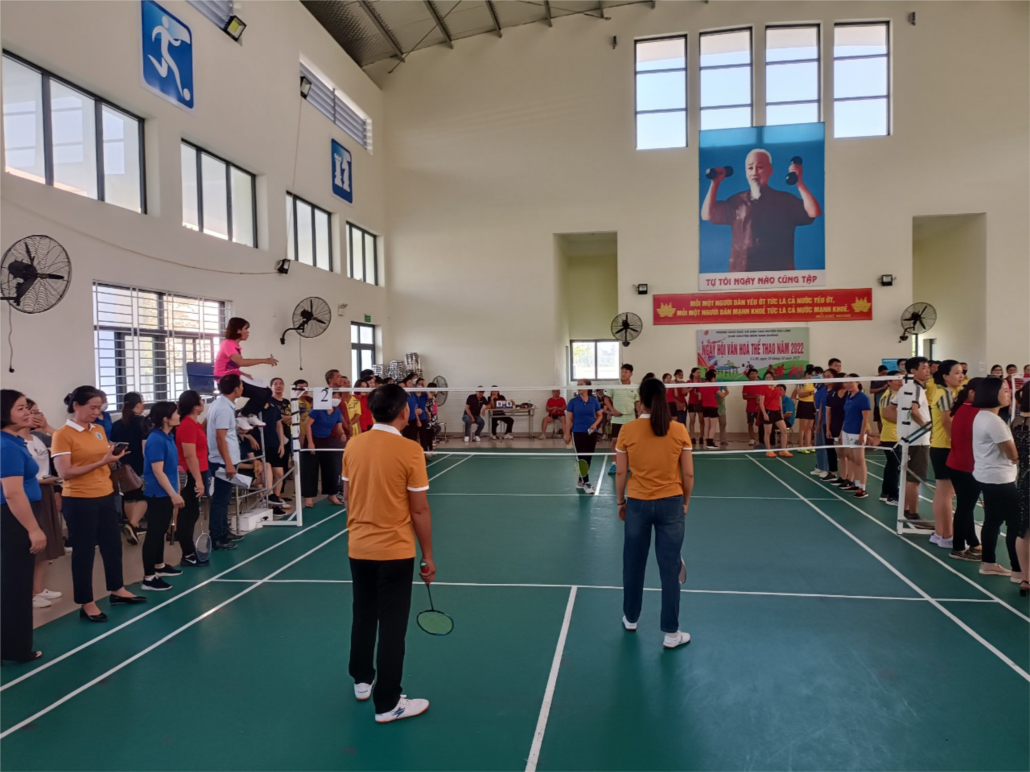 Sáng ngày 22/10/2022 đại diện công đoàn nhà trường có đồng chí Nguyễn Văn Phức, đồng chí Trâm đã tham dự thi giải cầu lông nội dung đôi nam nữ nhóm 2. Với tinh thần tham gia giao lưu, học hỏi hai đồng chí đã quyết tâm và thi đấu hoàn thành nhiệm vụ của mình, học hỏi được kinh nghiệm thi đấu của đội bạn mang lại niềm vui, góp phần nhỏ bé vào phong trào thể thao của nhà trường và góp phần vào sự thành công của giải.