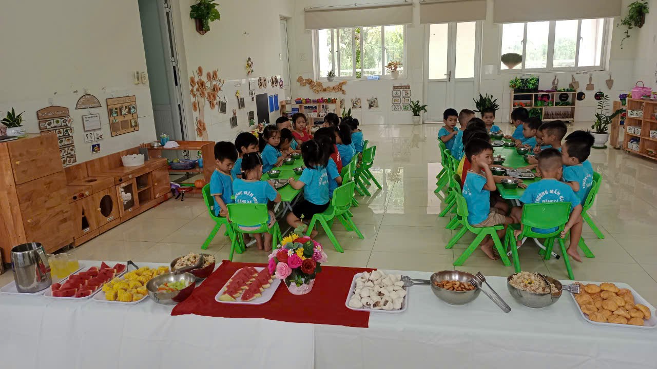 Phát triển kỹ năng giao tiếp và xã hội: Thông qua việc ăn uống trong môi trường mở, các bé có cơ hội tương tác với bạn bè, thầy cô, học cách chia sẻ và hợp tác trong việc sử dụng đồ ăn. Trẻ cũng học được cách chờ đợi và cư xử lịch sự trong quá trình lấy đồ ăn.