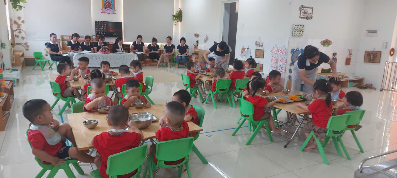 Giờ ăn diễn ra trong không khí vui vẻ, thân thiện, giúp trẻ ăn ngon miệng, hình thành nề nếp, thói quen tốt trong sinh hoạt hằng ngày 😊🍽️
