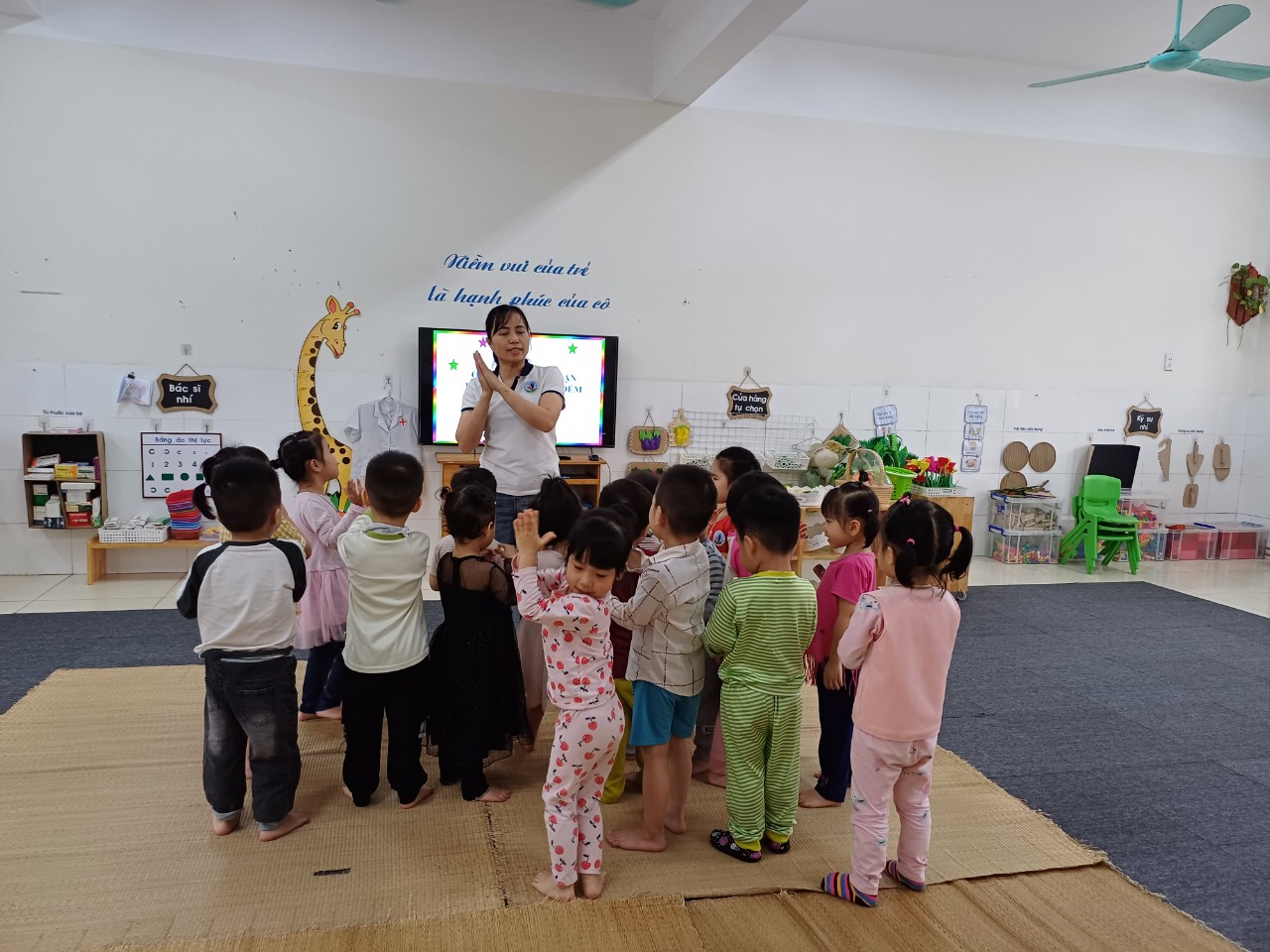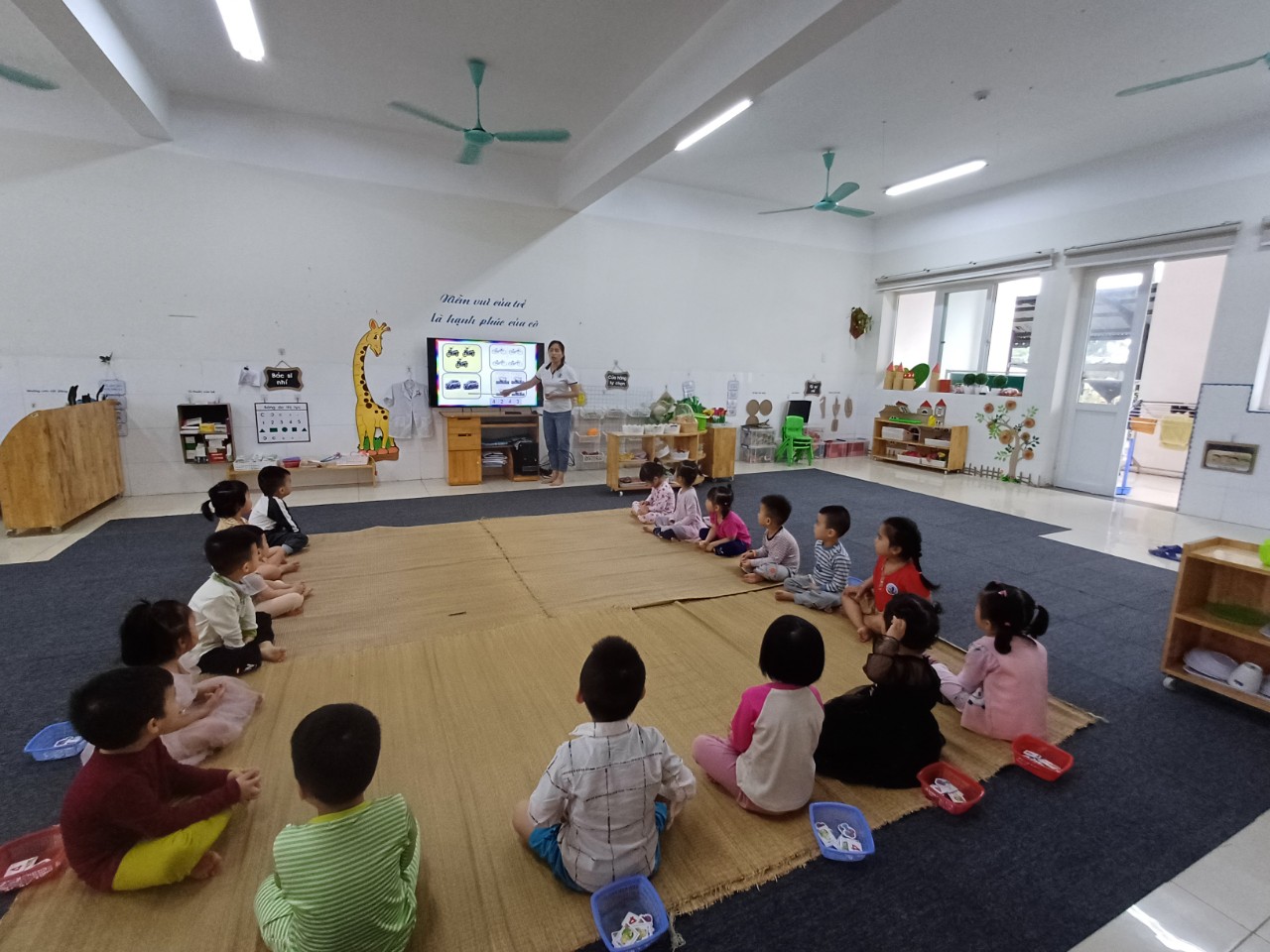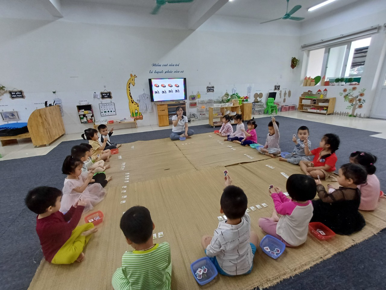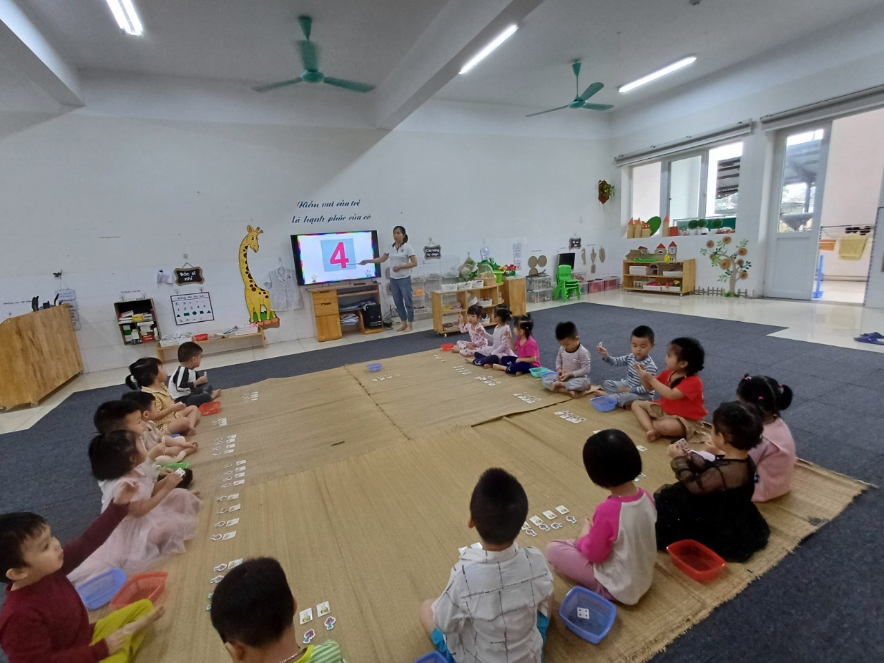Hoạt động nhận thức của trẻ mầm non là quá trình giúp trẻ hình thành các kỹ năng tư duy, phát triển trí não, nhận thức 1 cách hiệu quả. Hiểu được điều đó 2 cô giáo lớp MGB C2 đã tổ chức cho các con hoạt động đếm các đối tượng giống nhau trong phạm vi 4. Sau đây là 1 số hình ảnh của tiết học: