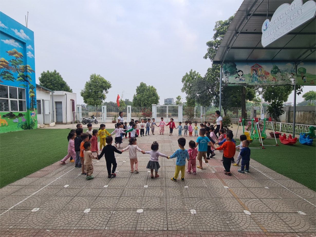 Giao lưu kết nối là một trong những hoạt động rất vui và ý nghĩa của các bé mầm non. Ở độ tuổi nào trẻ cũng cần được giao lưu để trẻ có thể mạnh dạn tự tin hơn trong giao tiếp và thúc đẩy phát triển ngôn ngữ của bé. Hai cô lớp B5 đã kết hợp với hai cô lớp nhà trẻ D3 tổ chức giao lưu thông qua trò chơi: Bóng tròn to, Lộn cầu vồng, Thả đỉa ba ba.